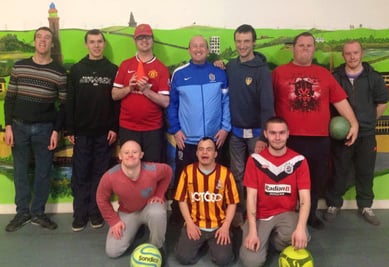 Mark (centre) is pictured here with Calderdale Support Services' Football Club members.